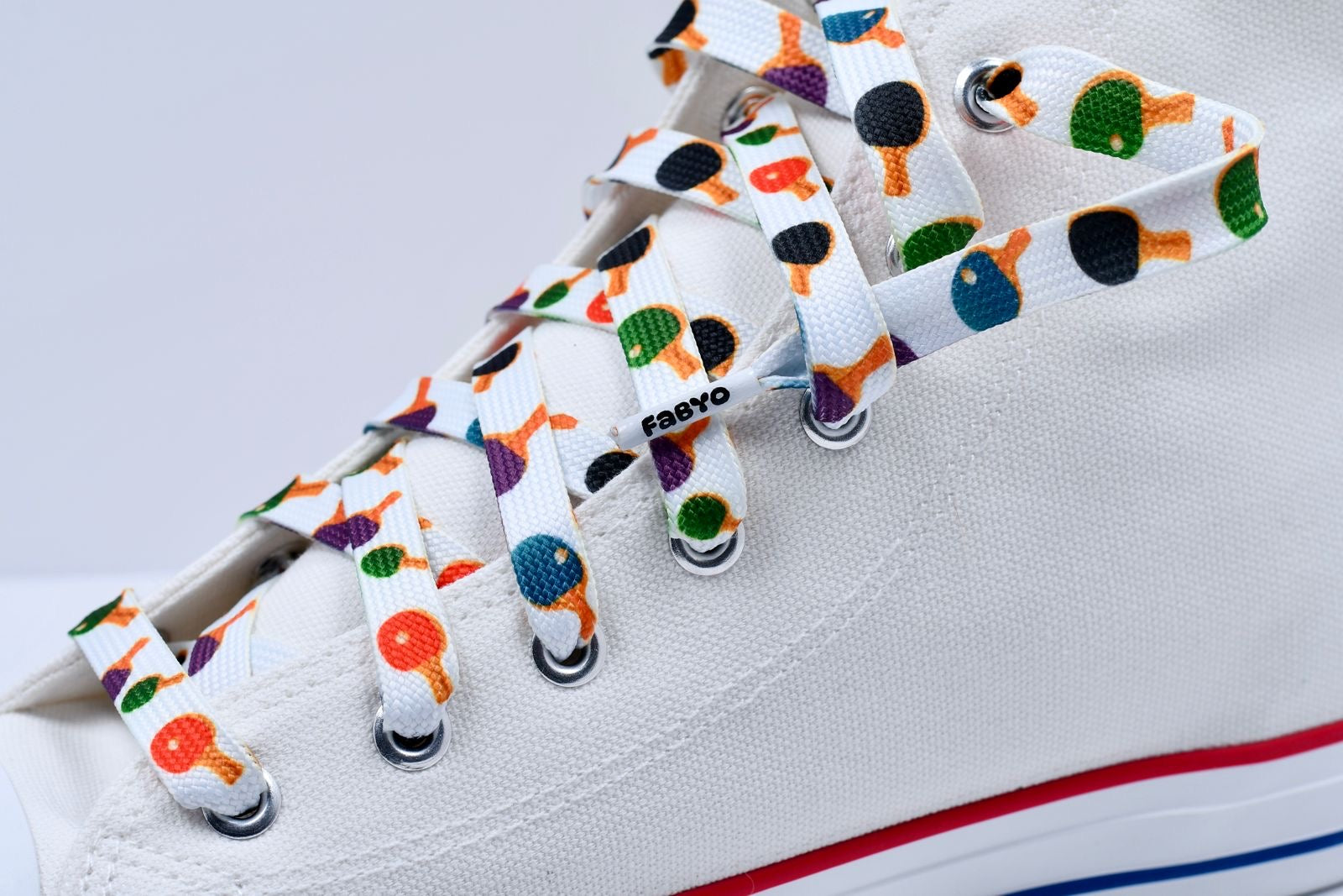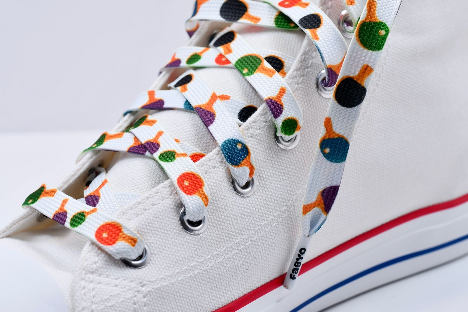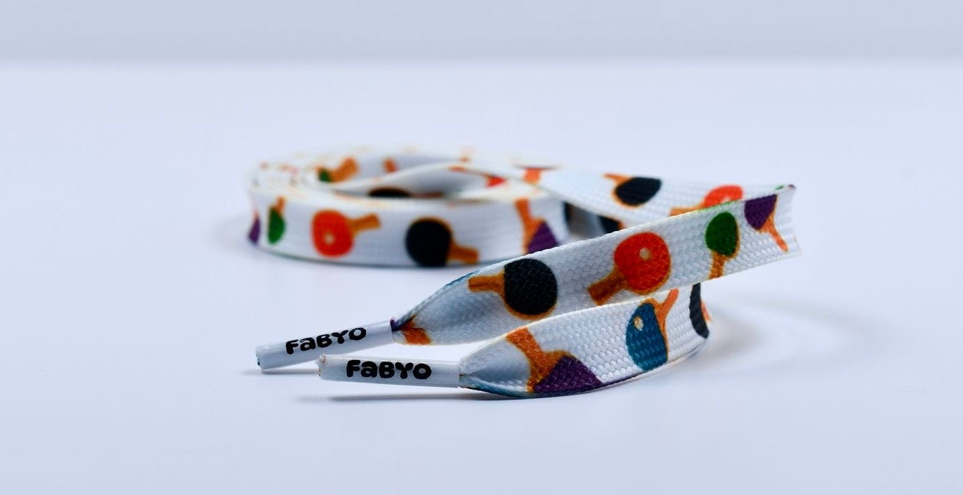 Serve up something a little softer with the White Bat Bounce shoelaces – a clean, toned-down design featuring multicoloured table tennis bats scattered across a fresh white background. Light, playful, and easy to style, they’re a subtle nod to the game with just the right touch of fun.